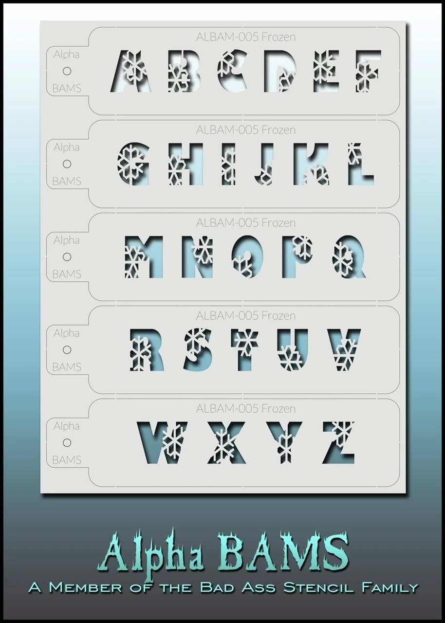 Alphabet Bad Ass Stencils, ideal for body painting and face painting. Once mastered can give your design a little bit of extra wow. Very quick and easy to use. Bad Ass stencils can be used with your airbrush or with a brush and sponge.
