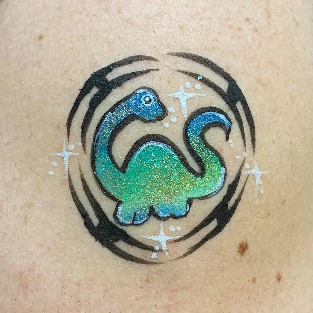 For best results load paint onto a face painting sponge or finger dauber with a tiny amount of water. Aim for a creamy consistency, leaning on the side of dry. If the paint is too wet, it can leak underneath the stencil.