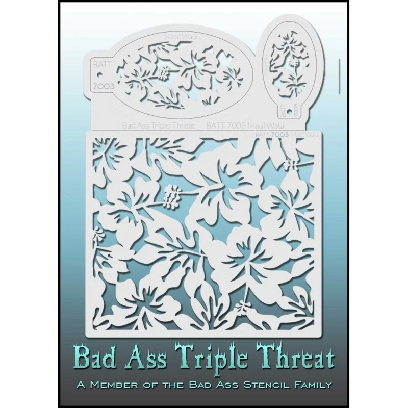 Bad Ass Triple Threat Stencils, ideal for body painting and face painting.  Once mastered can give your design a little bit of extra wow. Very quick and easy to use. Bad Ass stencils can be used with your airbrush or with a brush and sponge.