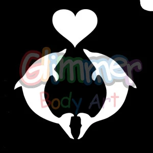 3 Layer Self Adhesive Dolphin Heart Glitter Tattoo Stencil 2″x2″