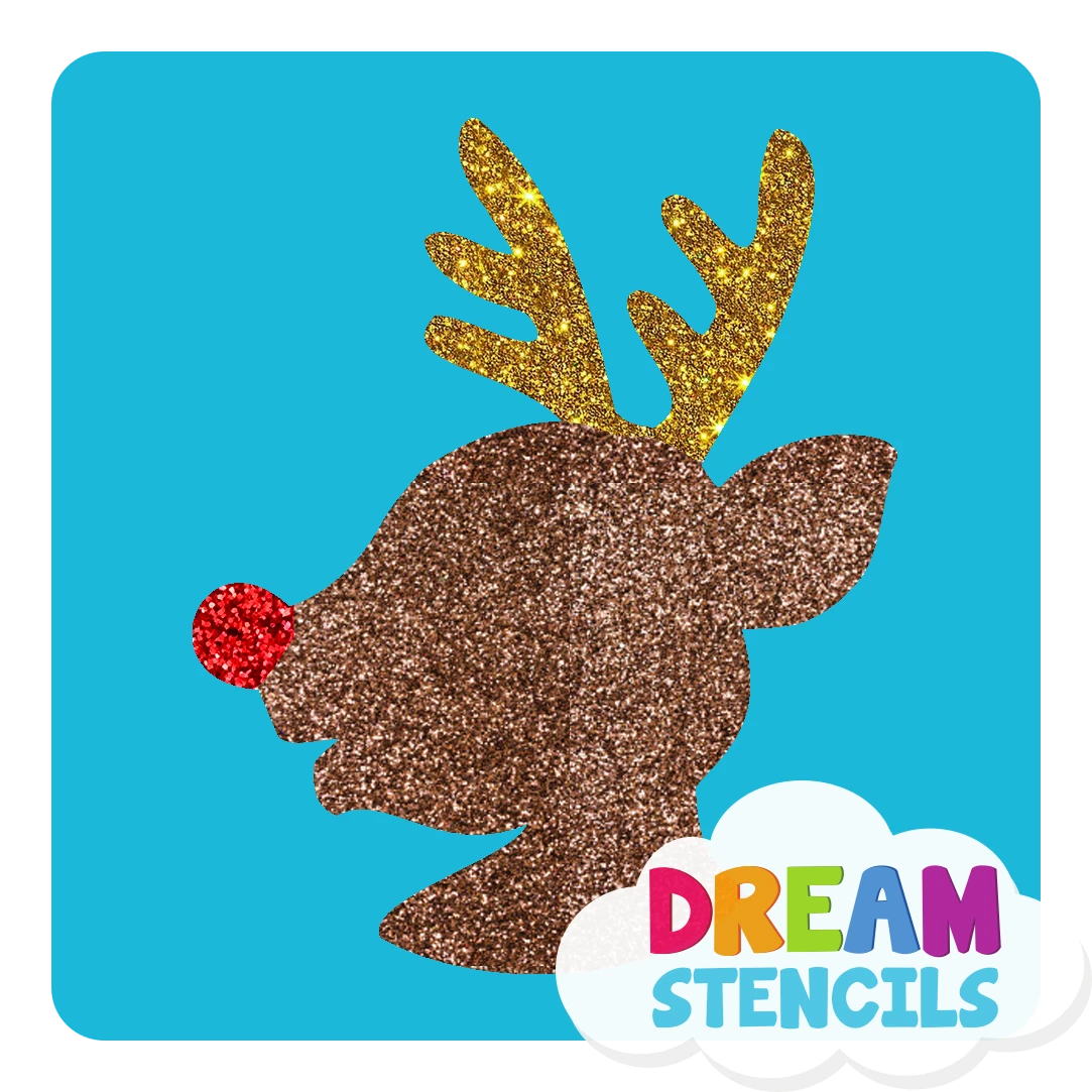 Rudolph Head glitter temporary tattoo stencils – pack of 5