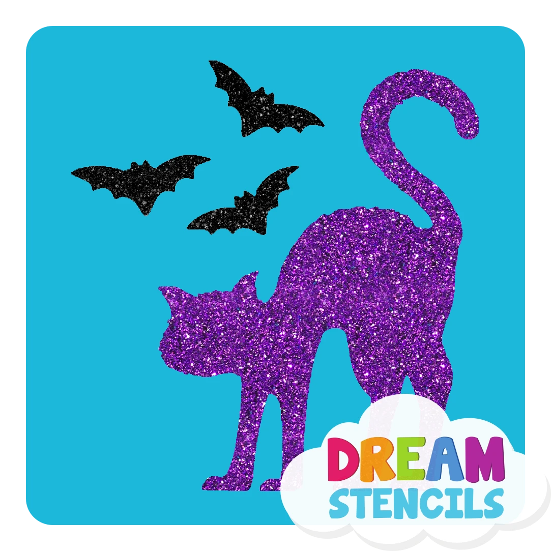 This Scared Cat with bats design would be great for Halloween, Wiard or Spooky Party!! You can use it for air brush, wall and paper decor, Wood signs, art and craft DIY projects or to make a glitter tattoos.