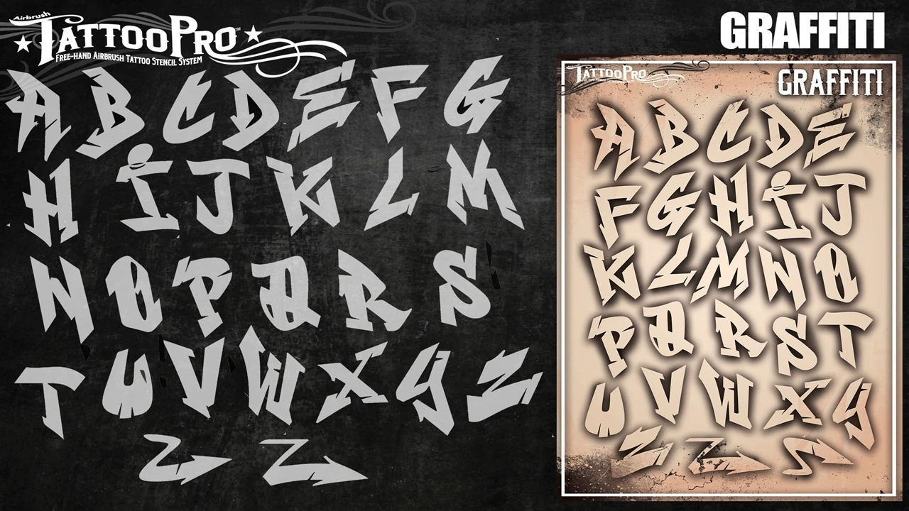 This special edition stencil kit contains 3-8x10in Stencil sheets, 1 alphabet over three sheets so that you can easily build your own graffiti words!