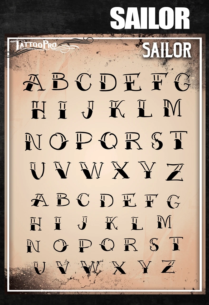 This Special Edition Stencil Kit contains two sizes of a traditional Sailor font! It is the perfect stencil kit for people looking to have custom witting or script on their body. Clients will love the fact that you will be able to offer them the ability to write their special quote on their body.
