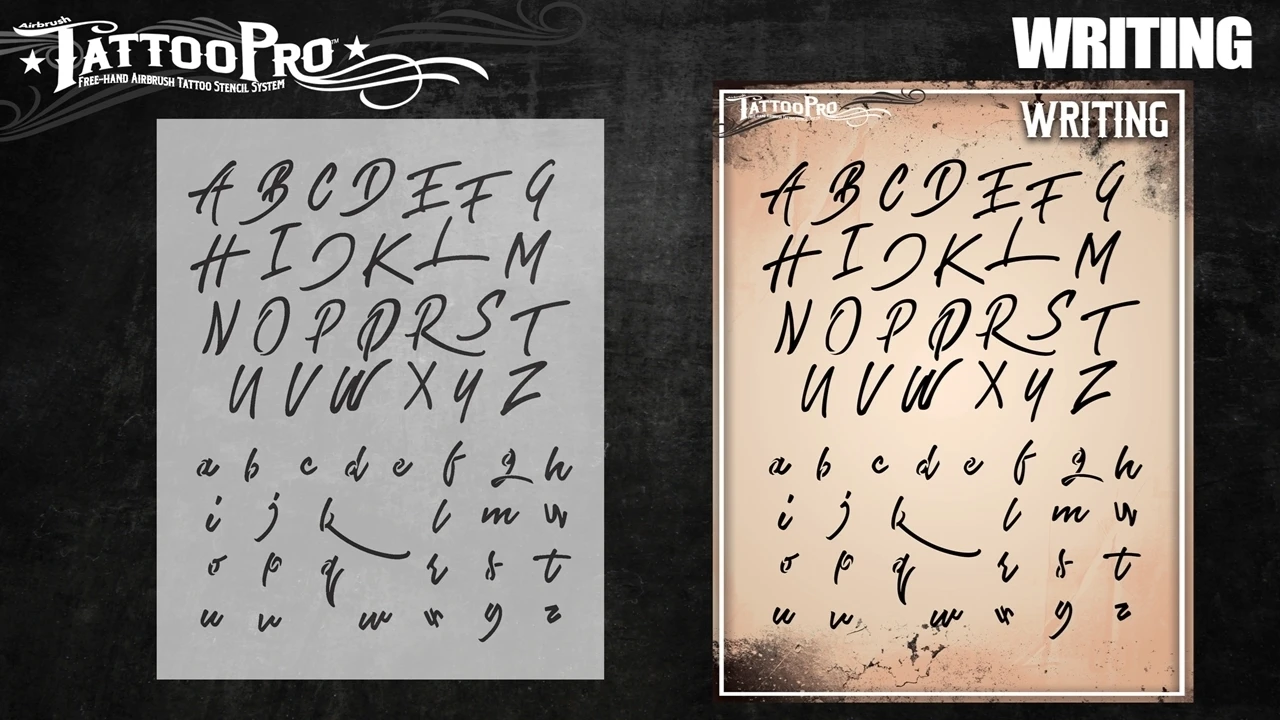 This Special Edition Stencil Kit contains an Upper and Lower case Handwriting font! It is the perfect stencil kit for people looking to have custom witting or script on their body. Clients will love the fact that you will be able to offer them the ability to write their special quote on their body. You are going to Love this new special edition stencil kit!