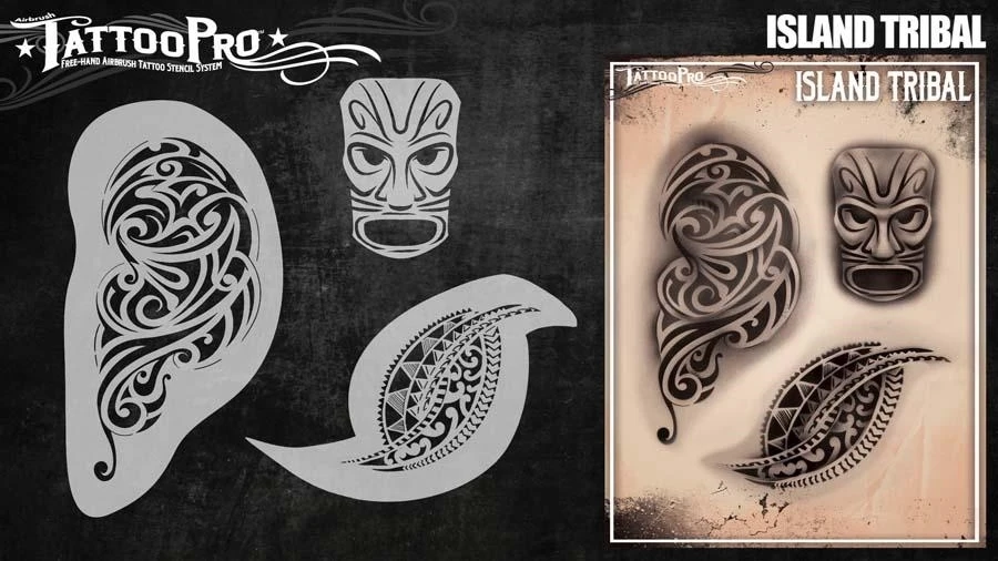 The Island Tribals stencil set contains island tribal elements used to make realistic airbrush tattoos.